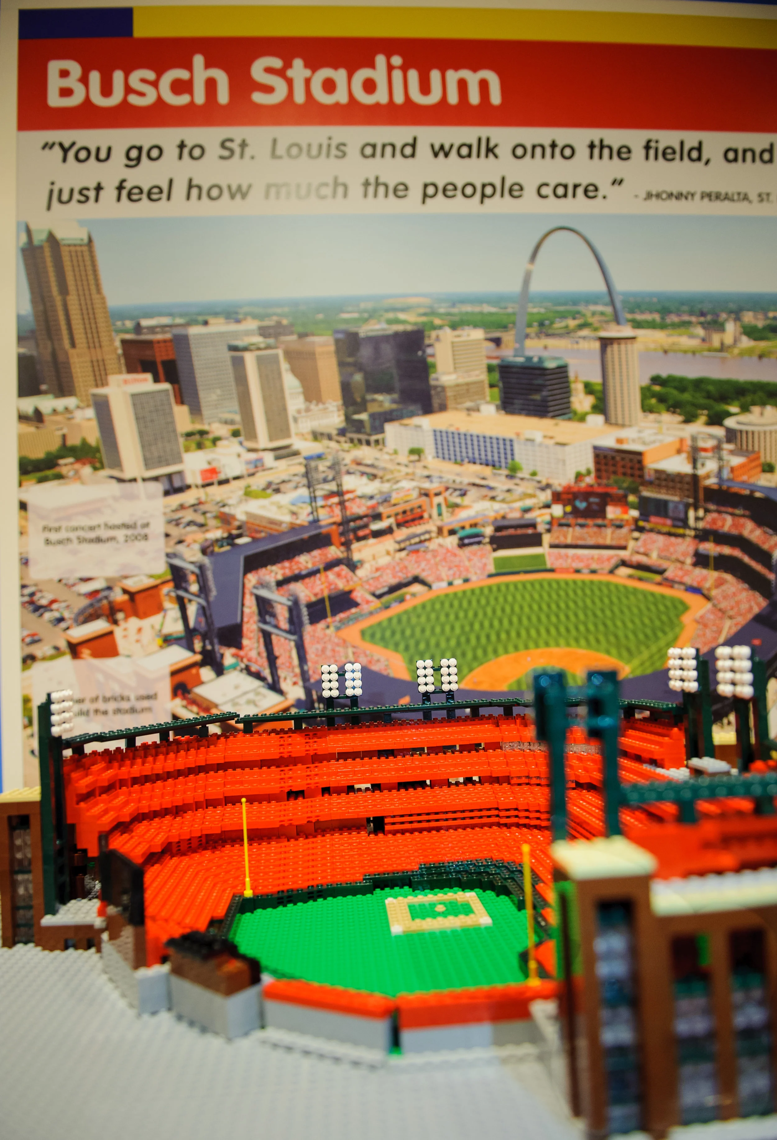 Artist Jason Burik contributes three incredible stadium replicas that are new to the exhibit. Cincinnati Reds fans must see Burik’s replica of Great American Ball Park (pictured above). He also pays tribute to St. Louis with a Busch Stadium replica (pictured below), and makes White Sox fans proud with a remarkable replica of Chicago’s old Comiskey Park.